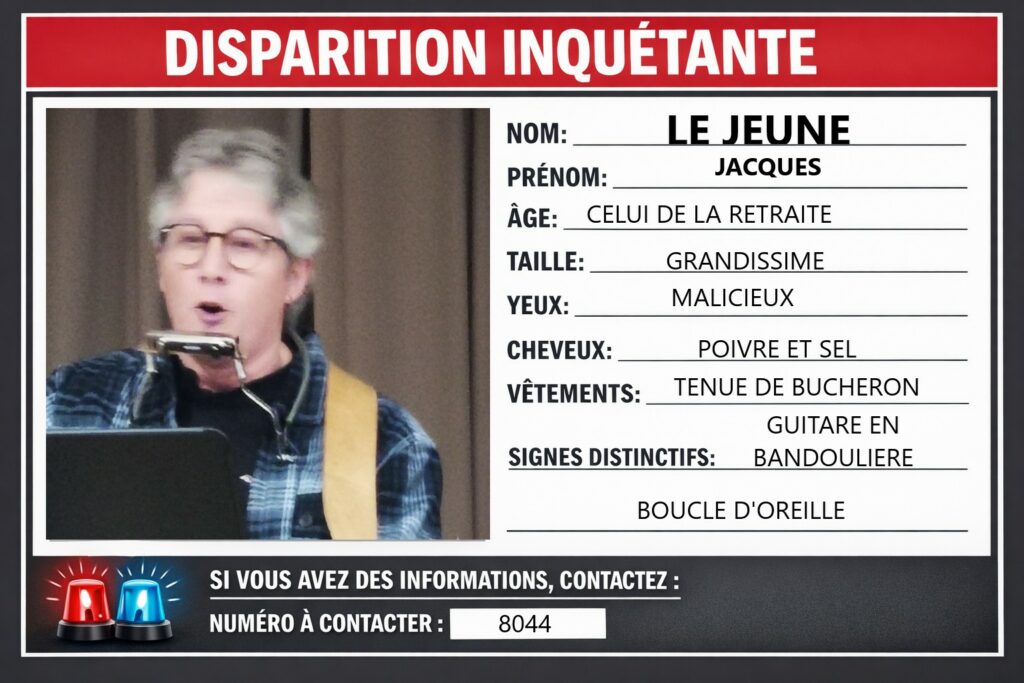 Le secteur tient à partager son inquiétude concernant la disparition du Rédacteur en Chef du blog de l’association Treizerien. Aux dernières nouvelles, il aurait été aperçu, selon plusieurs témoignages, sur la Forest-Landerneau à couper un arbre à l’aide de sa guitare, le mardi 13 janvier dernier.
